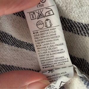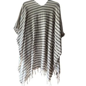 Lightweight and versatile, this Old Navy striped cotton kimono poncho features navy and black stripes for a neutral yet bold look. Designed with fringe trim and an oversized fit, it’s the perfect layering piece for boho style, cozy lounge wear, or a chic beach cover up. Easy one-size fit makes it a grab-and-go wardrobe essential for every season.