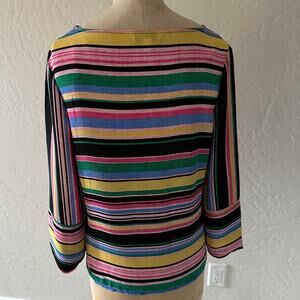 Fun, bright, vivid, cheery striped blouse with a textured look. Pictures don't do it justice!