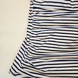 Dive into the ocean's embrace with this chic one-shoulder swimsuit. The nautical navy and white stripes paired with a modern cut exude timeless elegance. Crafted with a comfortable blend of polyester and spandex, it’s designed for confident and carefree moments by the water.