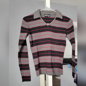 Women’s Striped Ribbed Sweater with Collar – Style & Co.