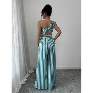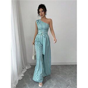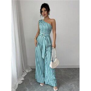 Women's Striped Shoulder Strap Belted Jumpsuit (Printed Asymmetric)