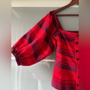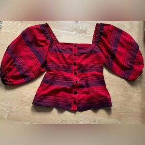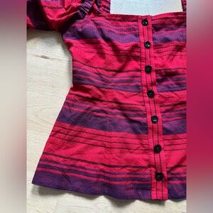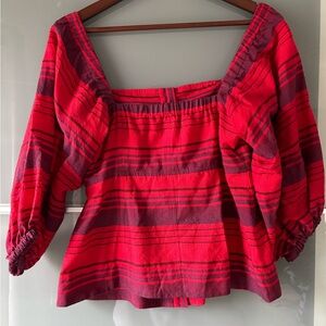 Women’s Striped Square Neck Balloon Sleeve Puffed Sleeve Blouse Top Size Small