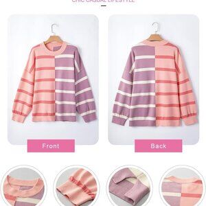 Features: The fall oversized sweaters feature a round neck/crewneck, cute ribbed knit neckline, long sleeve, exquisite exposed seam, striped color block, side split hemline, loose fit, casual style, this chic and stylish women striped sweater give you a charming and trendy looking when you wear it