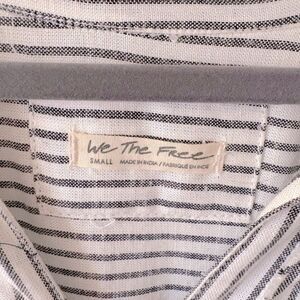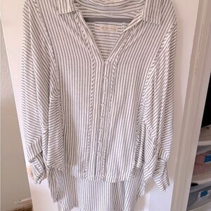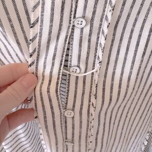 Elevate your wardrobe with Women's Striped Button-Up Top. Featuring a classic black and white stripe design, this top is perfect for any occasion. Comfortable and stylish, it's a must-have addition to your collection.
