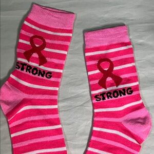 Womens “Strong” Pink Breast Cancer Ribbon Socks NWT