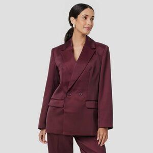 Women's Structured Satin Blazer - A New Day Burgundy S