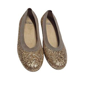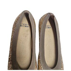 Women's - Stuart Weitzman Gold Glitter Lastikon Ballet Flats, Size 6