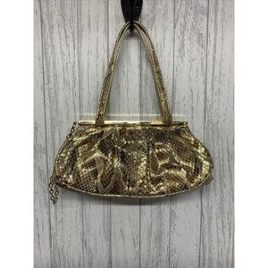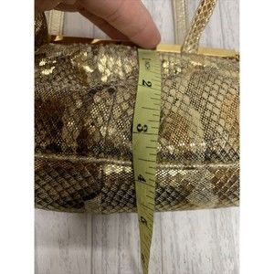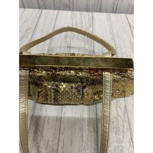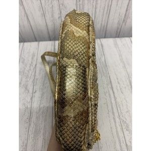 Womens Stuart Weitzman Vintage Gold Snake Skin Clutch. See pics for wear and discoloration at top Gold chain pulls out to open clasp
