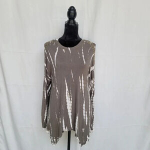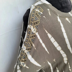 Womens Studded Tie Dye Cold Shoulder Top Stretch Knox Rose Olive Tie Dye Small S
