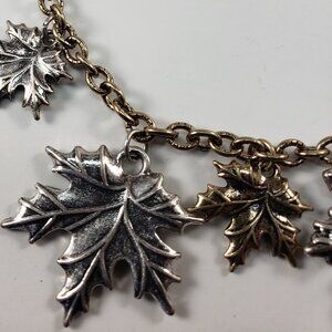 Women's Stunning Dual Tone Drop Leave Charms Design Necklace - Stylish 34+3.5 in