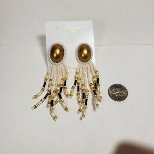 Elevate your style with these Women's Stunning Gold Color Fringe Colorful Beaded Drop Dangle Earrings. The 3-inch length showcases a perfect balance of elegance and flair, while the gold color adds a touch of sophistication to your ensemble. The eye-catching fringe design features an array of colorful beads that sway gracefully with your movements, making these earrings a delightful accessory to wear on special occasions or for adding a pop of color to your everyday look. With their unique and playful design, these dangle earrings are sure to make you stand out and complement your personal style. NWT