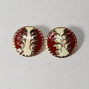 Women's Stunning Gold tone Multi-color Round Stud Earrings - Eye-Catching, RED