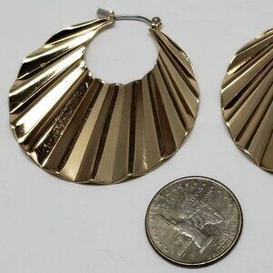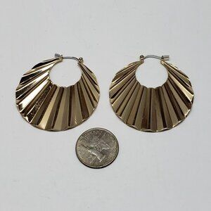 Elevate your style with these Women's Stunning Polished Gold-tone 2-inch Hoop Circle Design Dainty Earrings. Crafted for sophistication, these earrings feature a polished gold-tone finish that adds a touch of glamour to any ensemble. The 2-inch hoop design showcases a circle motif, creating a dainty and elegant aesthetic. Perfect for both casual and formal occasions, these earrings effortlessly blend modern trends with timeless charm, making them a must-have accessory for those who appreciate understated elegance. NWOT
