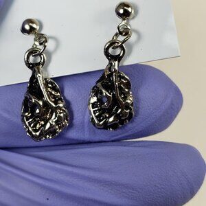 Women's Stunning Polished Silver tone & Black Drop Dangle Earrings, 1-inch
