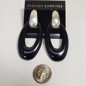 Women's Stunning Polished Silver tone & Black Hoop Drop Earrings, 2.3-inch Drop