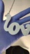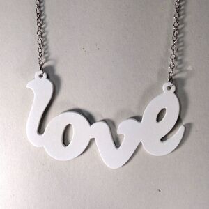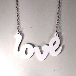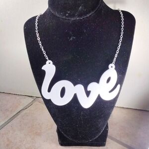 Women's Stunning Polished Silver tone White " LOVE " Design Long Necklace, 34-in