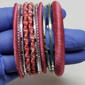 Women's Stunning Set of 11 Dainty Silver tone Colorful Bangle Bracelets, size 8"