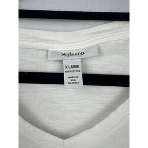 Women’s Style & Co Size XL White Short Sleeve Shirt with Red Lips Design. Made from 100% cotton.