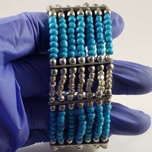 Women's Stylish Greenish Blue & Silver tone Multi-Strand Stretch Bracelet