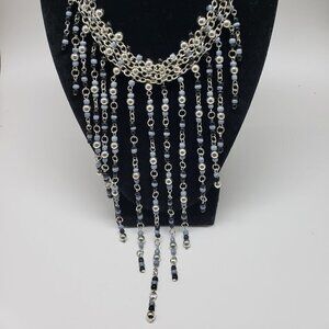Elevate your style with this stylish layered necklace featuring silver-tone, black, and gray beads in a fringed cascade design. With a length of 28 inches plus a 3.5-inch extender, this necklace offers versatility in how you wear it. It adds an elegant and trendy touch to your outfits, making it perfect for various occasions. NWOT