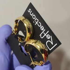 Enhance your ensemble with these chic Women's Stylish Polished Gold-Tone Hoop Omega Back Earrings. These earrings feature a sleek and polished gold-tone hoop design with an Omega back closure, offering both style and secure wear. Measuring at 1 inch, these earrings strike the perfect balance between sophistication and everyday elegance, making them a versatile addition to your jewelry collection. NWT