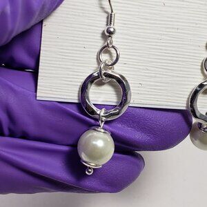 Elevate your style with our women's stylish polished silver-tone hoop and bead design drop-dangle earrings. These earrings feature a unique combination of hoops and beads that create a chic and eye-catching design. Crafted with high-quality materials, these earrings are durable and lightweight, making them perfect for everyday wear. Their drop-dangle design adds a touch of sophistication to any outfit, making them the perfect accessory for both casual and formal occasions. NWT