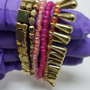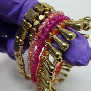 Enhance your accessory collection with this stylish set of 5 gold-tone layered, colorful beaded stretch bracelets. These bracelets are designed to fit comfortably with a 7-inch circumference, making them the perfect addition to your wrist. NWOT
