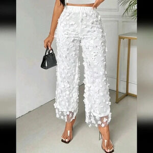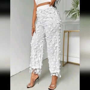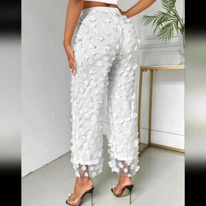 Women's Stylish Straight Leg Pants With 3D Flower Design - Random Pattern