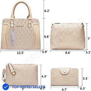 Brand new, never worn, and in flawless condition — this elegant 4-piece handbag set from Soperwillton includes a tote, shoulder bag, satchel, and purse, offering versatile styling and polished details for every occasion. The construction is chic, practical, and stylish, with clean lines and thoughtful organization.