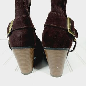 Step out in style with these chic suede ankle boots. Featuring a rich brown color and a sturdy block heel, these boots are perfect for any occasion.