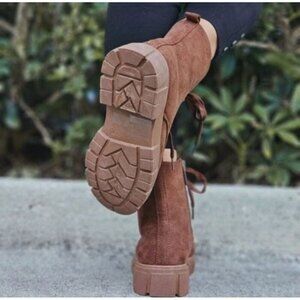 Womens Suede Brown Combat Ankle Boots Lace Up Heeled
