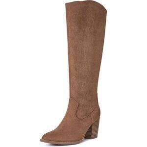 Trendy & Casual: These pointed-toe knee high women’s boots are attractive and comfy, made with a suede-like material that is slightly stretchy and lined with a soft and warm lining.