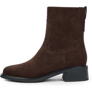 Women's Suede Chocolate Square Toe Chunky Short Boot Fall Boots Side Zipper