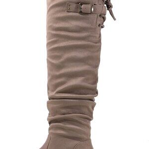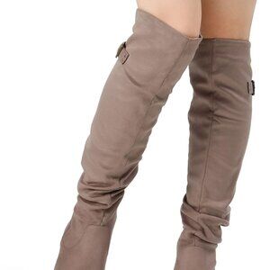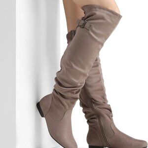 Khaki Women's Suede Over-The-Knee Boots — Cozy, edgy, and built for walkability.