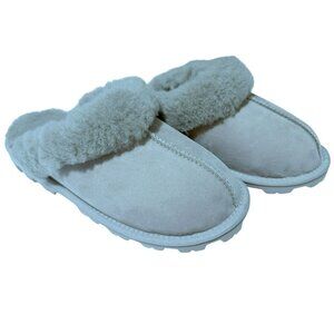 Womens Suede and Sherpa Slippers Sz 9 Gray Slip-On Indoor/Outdoor Members Mark