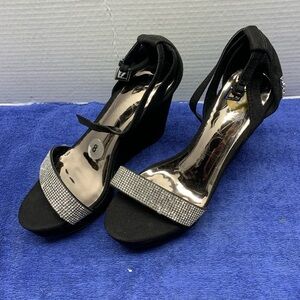 Women’s Sugar Black w/ Rhinestones Platform Wedge Sandals - Size 8 - Adjustable Buckle