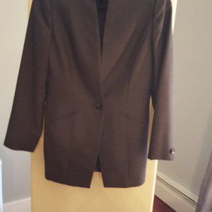 This gray suit by Entier has clean lines and is very flattering on the wearer.