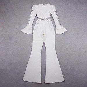 Women's Suit Matching Set 2 Pieces White Top + Flare Pants M
