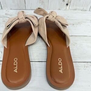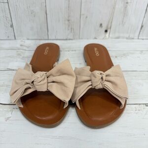Women’s Summer Aldo Beige Flat Sandal w/ Bow tie Summer Flats Vacation Size 6.5