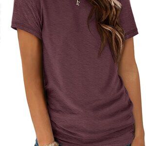 Features: A soft, breathable short sleeve tee with a comfy loose fit. It has a classic round neck and stretchy fabric, making it perfect for layering or wearing alone. The rich wine color adds a touch of sophistication to your casual outfits.
