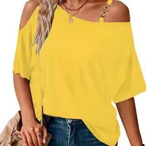 Women's Summer Black Cold Shoulder Top in Yellow, Size XXL