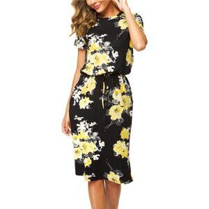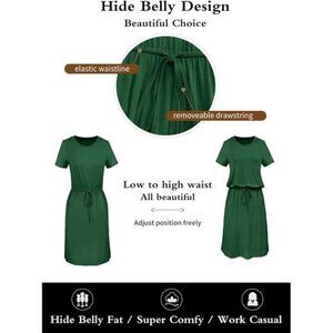 Women's Summer Blouson Dress – Knee-Length, Pocketed, Belly-Hiding Work Casual