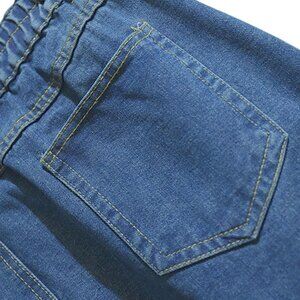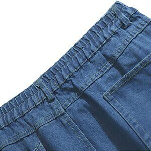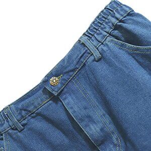 Women's Summer Casual Elastic Waist Pockets Work Midi Denim A Line Skirt