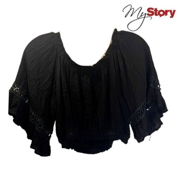 Elevate your summer style with this chic cropped off-the-shoulder top. Featuring 3/4 flare sleeves, it's perfect for casual outings or beach days. Pair it with high-waisted shorts or skirts for a trendy look.