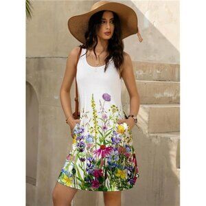 *Designs: Sleeveless, scoop neck, vibrant floral print, graphic, a line cut, side pockets, casual loose style, lovely boho beach vibe