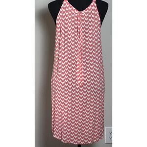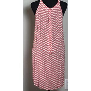 Women’s Summer Dress Orange White Chevron Pattern Slip On Dress Pockets Size (M)