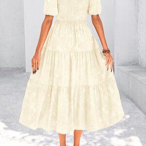 Highlights: Smocked Dress Women With Elegant A-Line Style And Chic Crew Neck Design, Adds A Touch Of Elegance And Sophistication. Feel Confident And Effortlessly Stylish In This Short Sleeve Dress, Designed To Accentuate Your Waistline And Highlight Your Natural Beauty