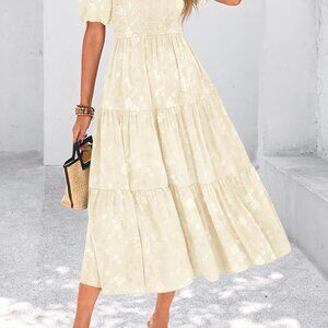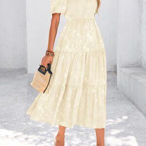 Womens Summer Dresses Wedding Guest Floral Midi Sundress Short Puff Sleeve Flowy