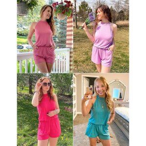 Unique Design: Casual style, sleeveless, solid color, keyhole back with button details, loose fitting romper, two side pockets.