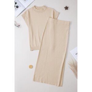 Women's Summer Knit Sweater Set Cap Sleeve Tops Maxi Skirt Bodycon Casual